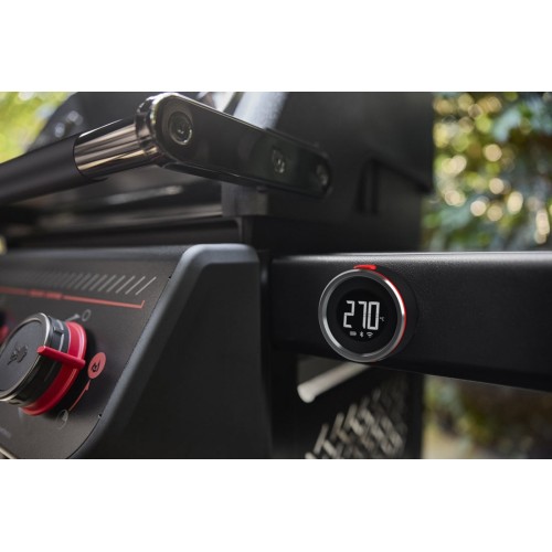 • Umožňuje vzdálené monitorování pomocí aplikace Weber Connect® pro kontrolu teploty jídla s upozorněním na potřebu obracení, možnost podávání pokrmu a ukončení přípravy.